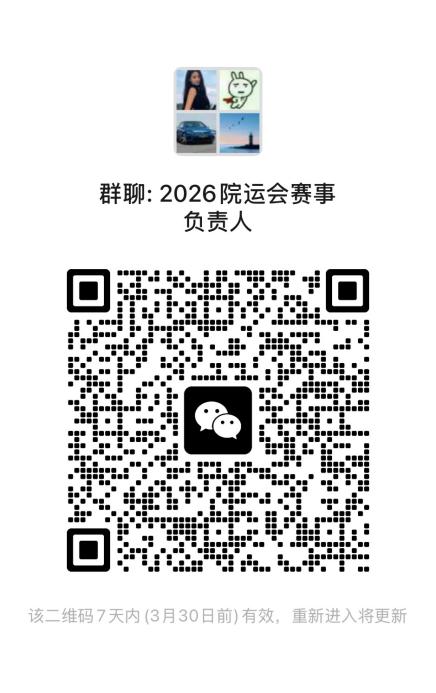 3.请以班级为单位推选班级运动会负责人(每班一名)扫描下方二维码进入“2026年学院运动会赛事负责人群”。