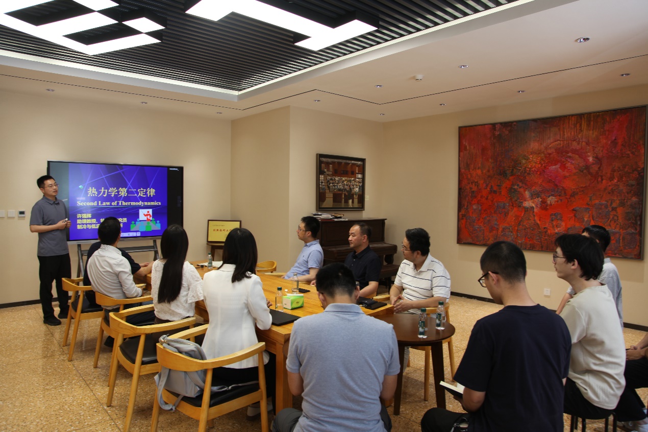 许强辉老师以“热力学第二定律—孤立系统熵增原理”为主题进行授课。许老师的授课内容精炼、逻辑缜密、重点突出,注重启发式教学与互动相结合、课程内容与科研实际相结合、能力培养与思政融入相结合。参会师生踊跃讨论交流,并从不同视角给出了针对性建议。
