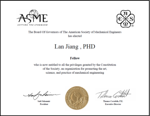 Prof. Lan Jiang from BIT Elected American Society of Mechanical Engineering Fellow