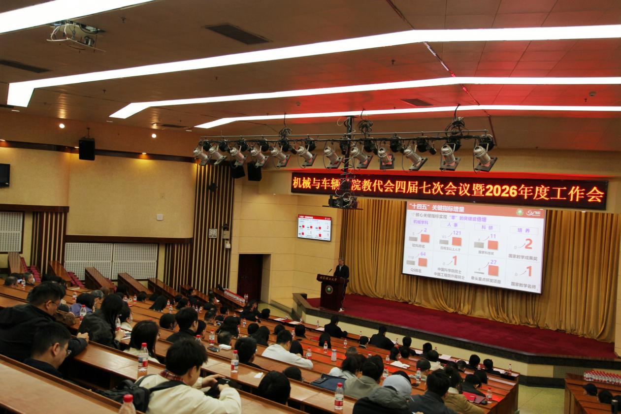 2026年是中国共产党成立105周年,是“十五五”开局之年,也是机械与车辆学院深化推进“双一流”建设、实现跨越式发展的关键之年。大会号召,全体教职工要坚持以习近平新时代中国特色社会主义思想为指导,全面贯彻落实党的二十届四中全会精神,弘扬“延安根、军工魂、领军人”红色基因,强化担当作为,狠抓工作落实,为把学院早日建设成世界一流机械学院而努力奋斗!